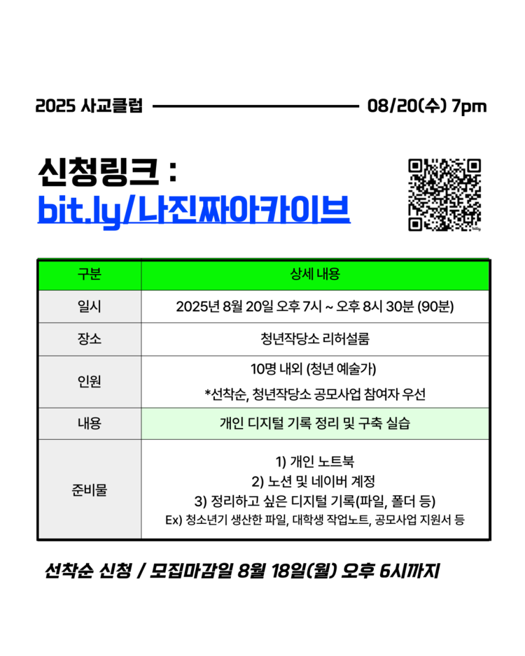 📌 신청링크 👉 https://bit.ly/나진짜아카이브