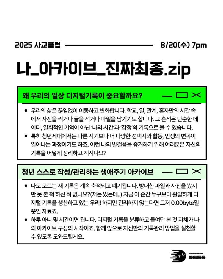 #나아카이브진짜최종 #디지털기록정리 #청년아카이브 #사교클럽 #청년예술가모여라 #노션워크숍 #기록의힘 #청년작당소 #파동통통 #청년문화공간 #남포동 #bnk아트시네마 #청년커뮤니티